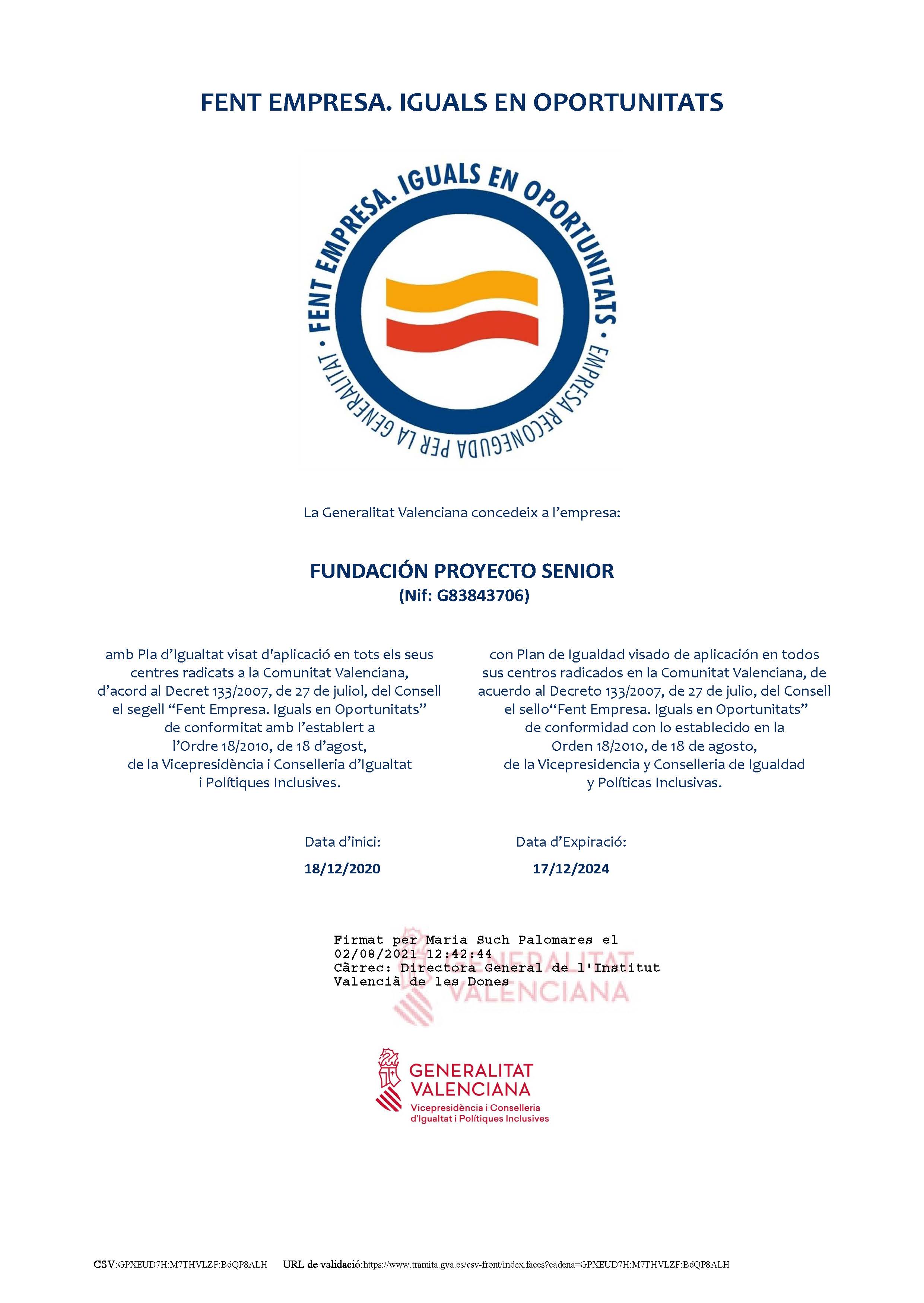 PLAN DE IGUALDAD DE LA FUNDACIÓN PROYECTO SENIOR